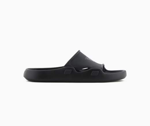 Sliders realizzate in pvc con tomaia a fascia e iconica aquila in tono. Un accessorio da sfoggiare con stile anche a bordo piscina.