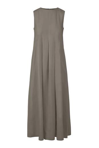 Abito ampio senza maniche con pieghe verticali e zip posteriore in lyocell fluido. Offre leggerezza e traspirabilità nelle giornate calde. Vestibilità regular con stile minimale, adatto a occasioni estive.