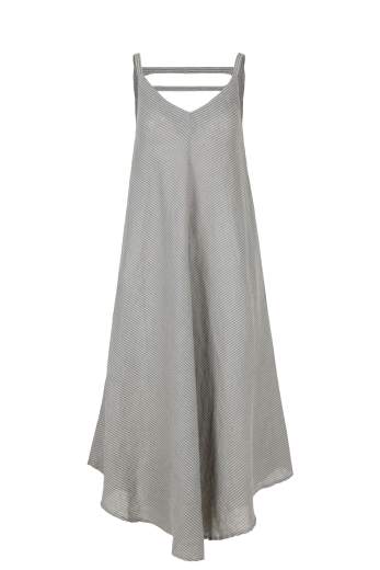 Abito ampio con spalline larghe e linea fluida. Realizzato in lino a righe, leggero e traspirante, offre comfort nelle giornate calde. Vestibilità regolare. Ideale per i look estivi.