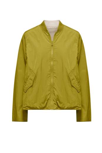 Giacca corta bicolore reversibile in nylon ad alta densità, effetto vetrato, con colletto bomber e chiusura a zip. Con proprietà windproof, water resistant e asciugatura rapida. Il design reversibile aggiunge versatilità per la stagione primaverile.