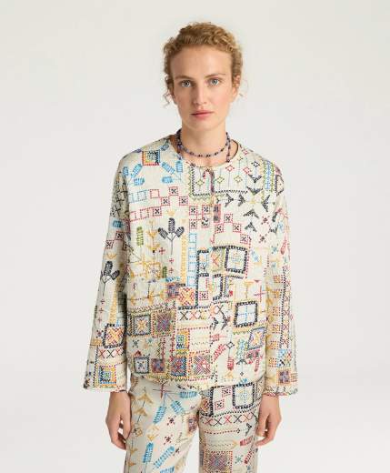 CAPPOTTO GELSOMINO REV IN TWILL TRAPUNTATO STAMPATOCappotto boxy reversibile in twill stampato, trapuntato nel nuovo disegno logo Momonì. Gelsomino può essere indossato in unito grazie all'interno in tessuto unito con trapunto in filo in tono. Chiusura con bottoni snap metallici. Profili a contrasto.