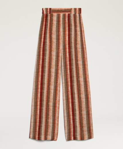 Pantalone carry-over largo in lucente crepe de chine di seta stampata in Italia. Il volume ampio di Baccarat si sposa al comfort della cintura elasticata per un look pigiama deluxe. Tasche inserite nel fianco.Vestibilità regolare, lunghezza maxi.
