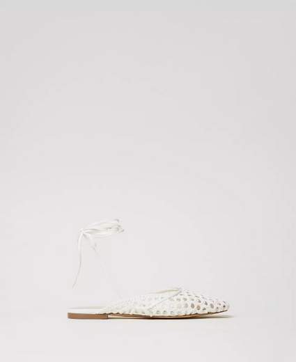 Ballerina a rete con intrecciBallerina modello mules a rete con intrecci, laccetti da annodare alla caviglia e punta leggermente sfilata.