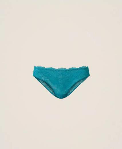 Slip in pizzo a motivo floreale e jersey stretch in tono con fodera in tulle, smerlo in vita, placchetta logo Oval T in metallo sul retro.