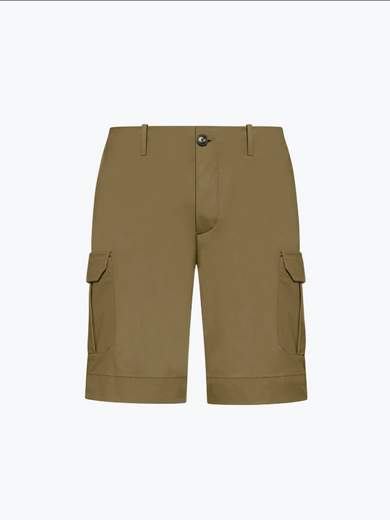 Surflex Cargo Short PantIl design senza tempo di ispirazione militare dei bermuda cargo si rinnova in chiave contemporanea ed elegante, in questo modello in fresco e leggerissimo tessuto elasticizzato Surflex®. Il suo look super opaco, valorizzato dall'ampia palette di colori disponibili, si aggiunge al comfort assoluto di questo modello dalla lunghezza media, protagonista annunciato della stagione più dinamica dell'anno. La vita ad ampi passanti presenta la fascia e la bottoniera interne stampate tono su tono nell'esclusivo monogram Razzle Dazzle. L'essenzialità del davanti è accentuata dalla pregiata abbottonatura in corno dissimulata dalla pattina, affiancata dalle tasche alla francese con pratico tiretto elastico nella destra. Le caratteristiche tasche a soffietto applicate sulla gamba e le posteriori a filetto, con l'iconico logo a microiniezione nero sulla destra, completano la creazione raffinata e di grande versatilità, perfetta per qualsiasi look casual estivo.