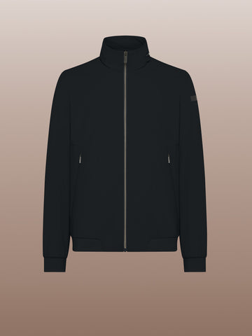 Il design classico, la struttura e il gusto per i tessuti hi-tech rendono questa giacca un passepartout sempre a proprio agio, nella creazione di un casual look per la mezza stagione. Il tessuto a membrana stretch protegge dalla pioggia e dal vento, coadiuvata dalla leggera imbottitura con fodera glossy. La zip integrale metallica chiude il davanti fino al colletto verticale, provvisto di cappuccio di servizio. Le pratiche tasche laterali sono chiuse da zip invisibili. L'interno presenta un taschino con zip invisibile, impreziosito dal doppio filetto arancione fluo e dalla tag a cuore "Made with love, designed in Tuscany". Il logo a microiniezione nero sulla manica sinistra conferisce un'ulteriore nota distintiva.