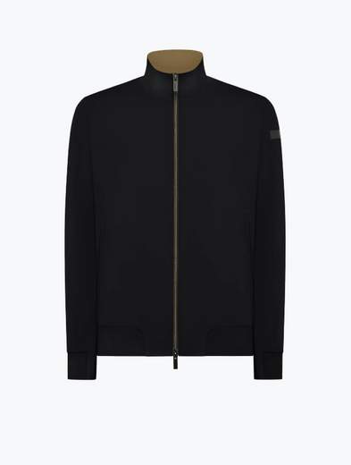 La giacca bomber dal design essenziale e modernissimo è realizzata in tessuto a membrana leggero, traspirante e impermeabile. Il davanti è caratterizzato dalla chiusura frontale con zip, affiancata dalle doppie tasche laterali, di cui una chiusa da zip invisibile, con tiretto elastico nella destra. La vestibilità regolare è perfezionata dal colletto verticale, dai polsi e dal fondo rifiniti in costina elasticizzata. La zip che chiude il taschino interno è impreziosita dal distintivo doppio filetto arancio fluo. La tag a cuore "Made with love, designed in Tuscany" e il logo a microiniezione nero sulla manica sinistra rendono questa giacca inconfondibile, ideale per completare un pantalone chino o cinque tasche nel casual look di tutti i giorni.