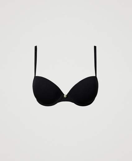 Reggiseno push-up crossback in charmeuseReggiseno push-up crossback in charmeuse di microfibra, imbottito con coppe estraibili. Ha ferretto e ciondolo a perla al centro delle coppe. L’elastico al fondo con passante e le spalline regolabili logate multiposizione si possono indossare sul retro a piacimento.